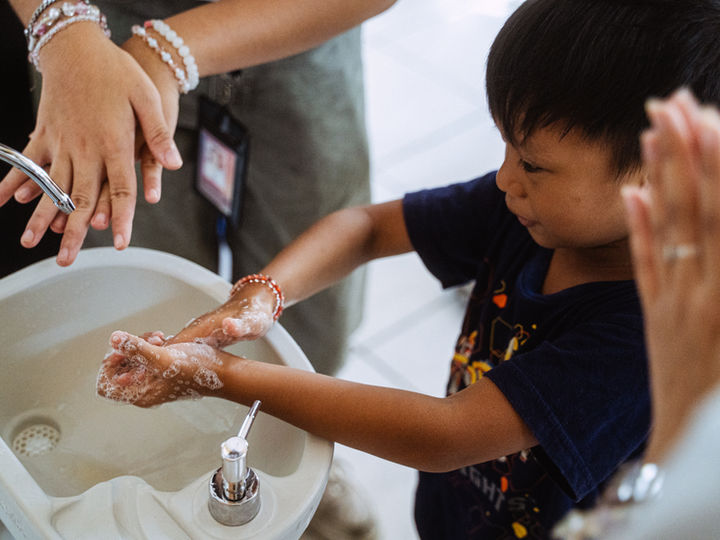 We showed the kids how to wash their hands properly using portable hand-washing stations. They joined in eagerly, learning why keeping clean is important in a fun way. Each child also got a strong school bag filled with supplies like notebooks, pencils, erasers, and tumblers to help them do well in school.